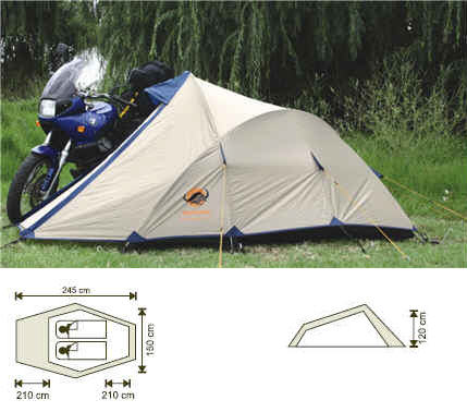 Capaciteit: 4 personen; Gewicht: 13,8 kg; Afmeting (lxbxh): (100+100+240+80)x240x185; Buitentent: Polyester pu gecoat 2000mm; Binnentent: Ademend polyester; Vloer: Polyester 210d 4000mm; Frame: Fibre glas stokken 11mm en 9,5mm en 16mm stalen stokken; Twee