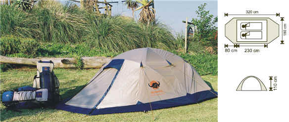 Capaciteit: 2 personen: Buitentent: 65% polyester en 35% katoen; Binnentent 65% polyester en 35% katoen; Vloer PVC/Polyester met fibreglas stokken