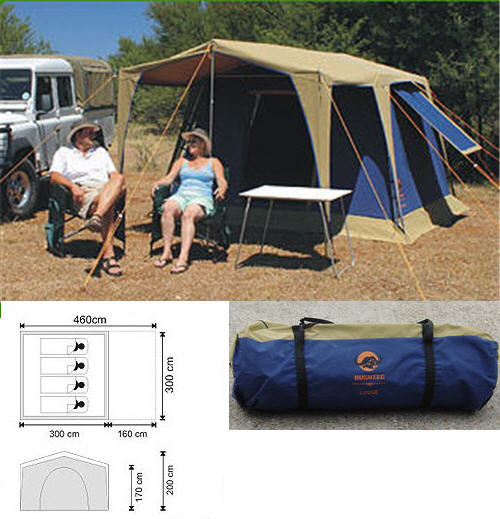 Capaciteit:6 personen plus 2 personen indien extensie is ; Gewicht: 36 kg; Afmeting (lxbxh): 300x300x220 en de extensie 300x300; Buitentent: Ripstop volgens militaire specificaties; Binnentent: Ripstop volgens militaire specificaties; Vloer: 550 g/m2 PVC;